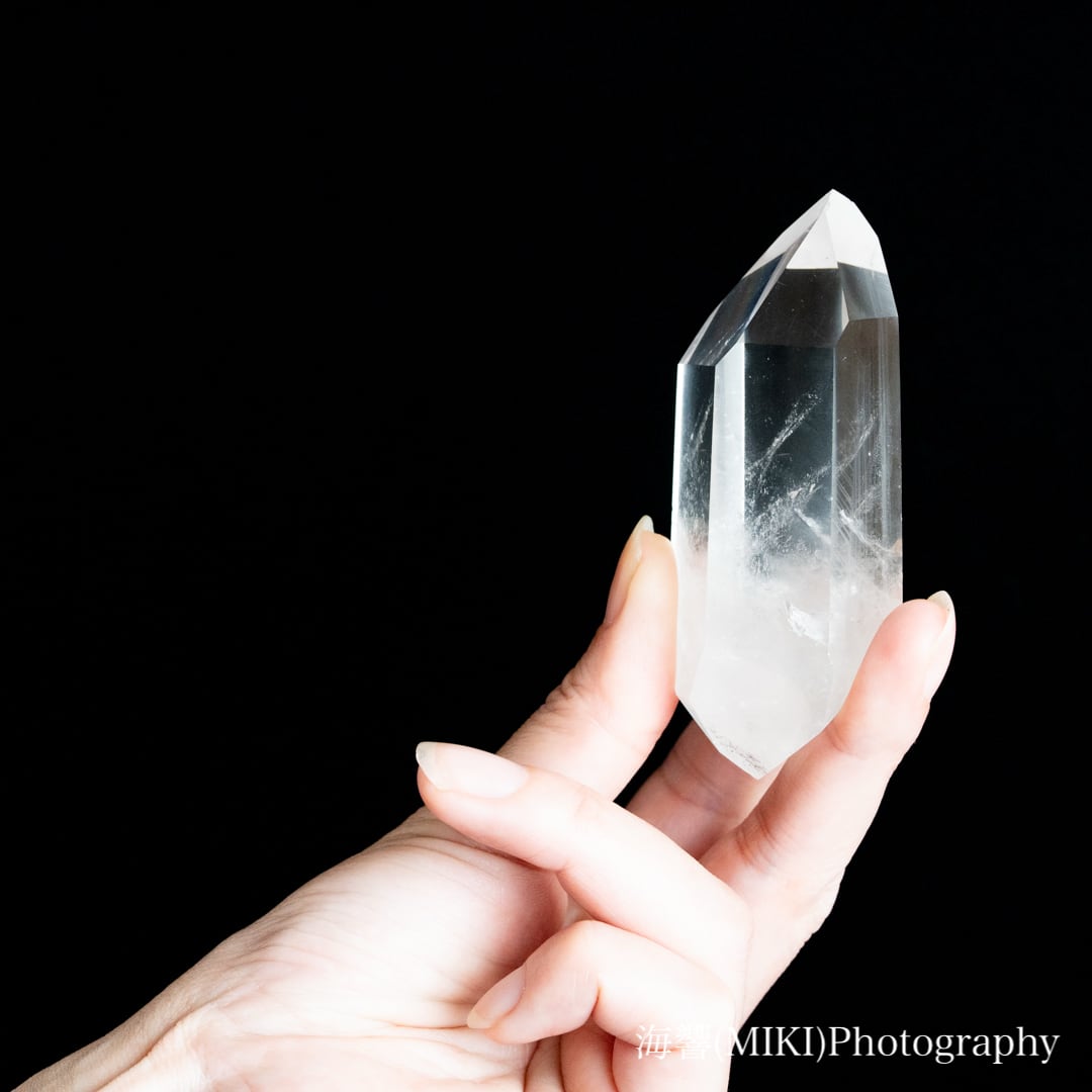 透明感が綺麗なレムリアンクォーツ、存在感のあるダブルポイントです。