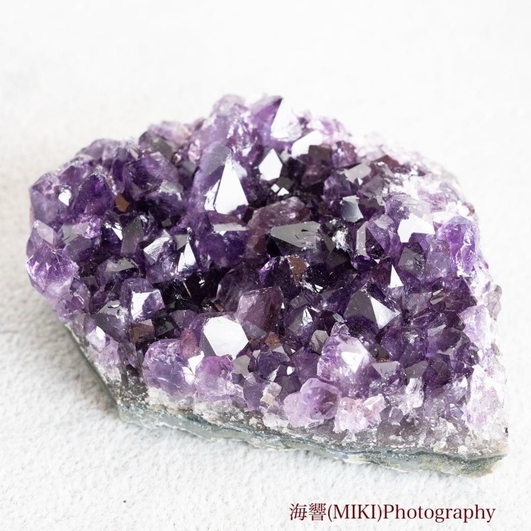少し小さめのサイズで、結晶が細かく深い紫が神秘的なアメジストです。