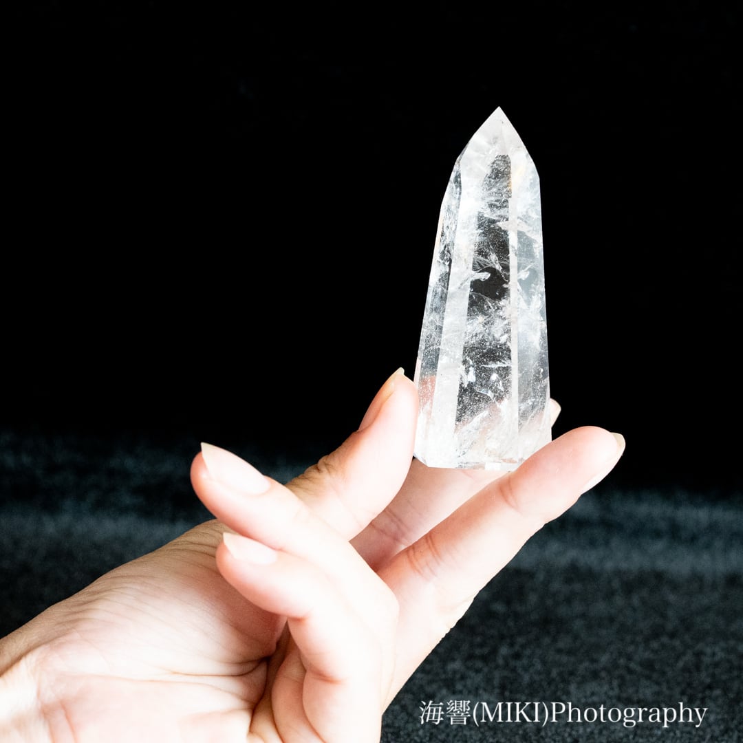 透明感と内包物の輝きが美しい、ポイントのレムリアンクォーツです。