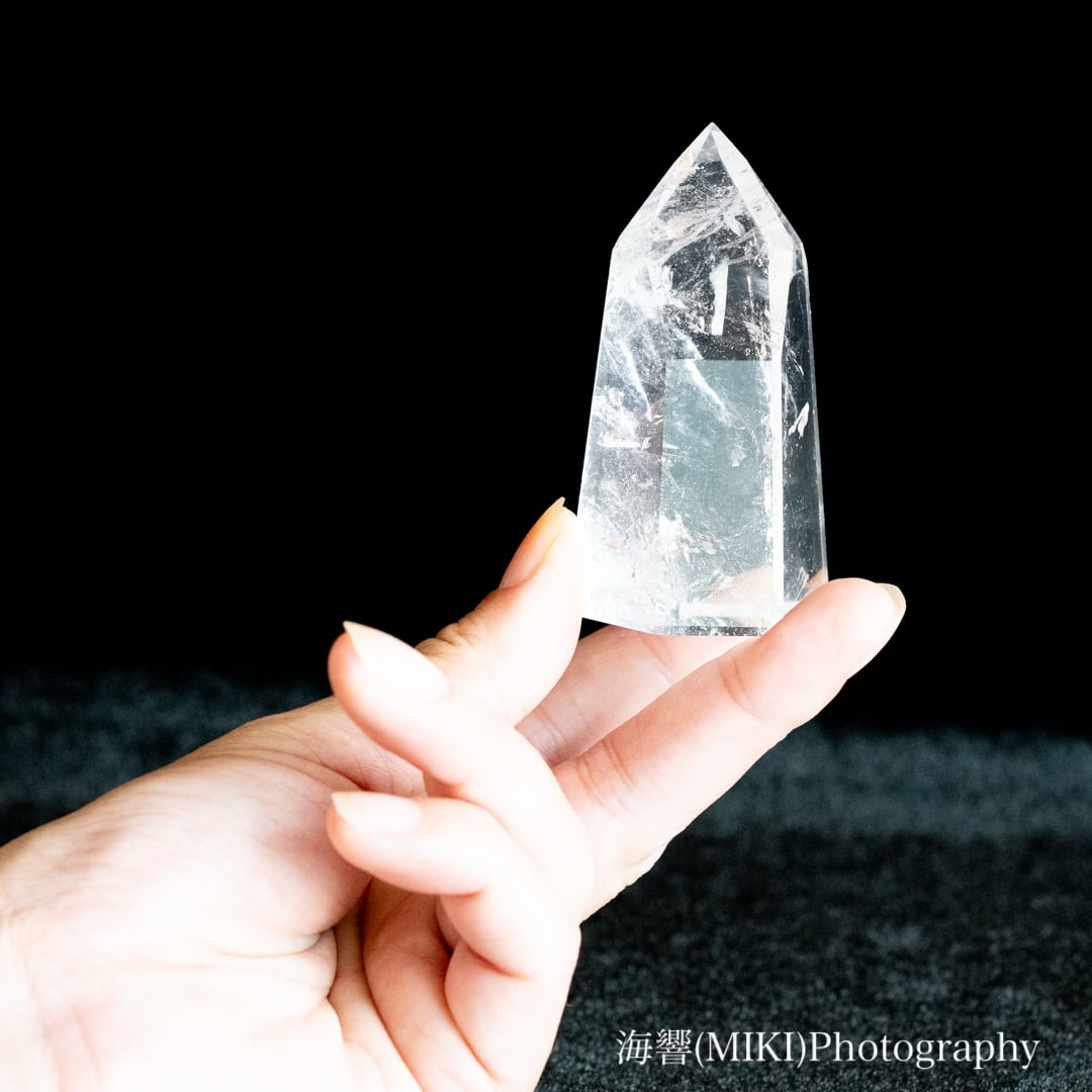 透明感と内包物の輝きが美しい、ポイントのレムリアンクォーツです。