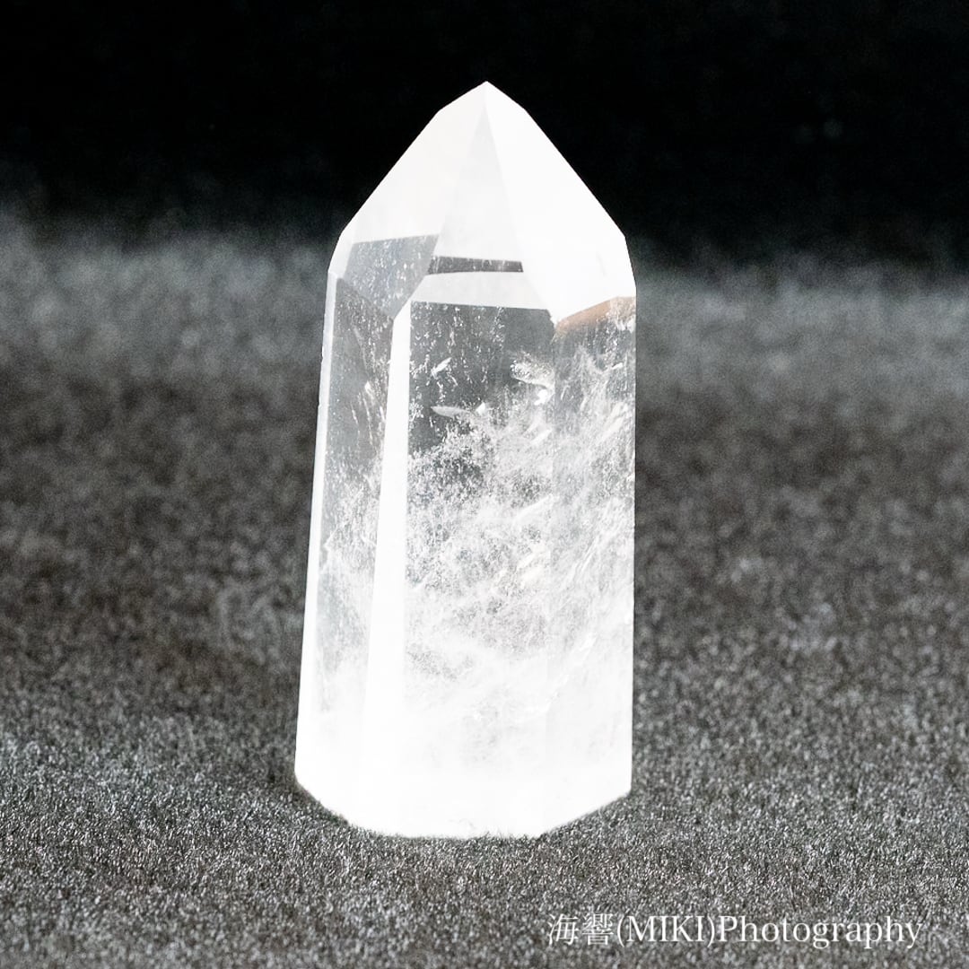 透明感と内包物の輝きが美しい、ポイントのレムリアンクォーツです。