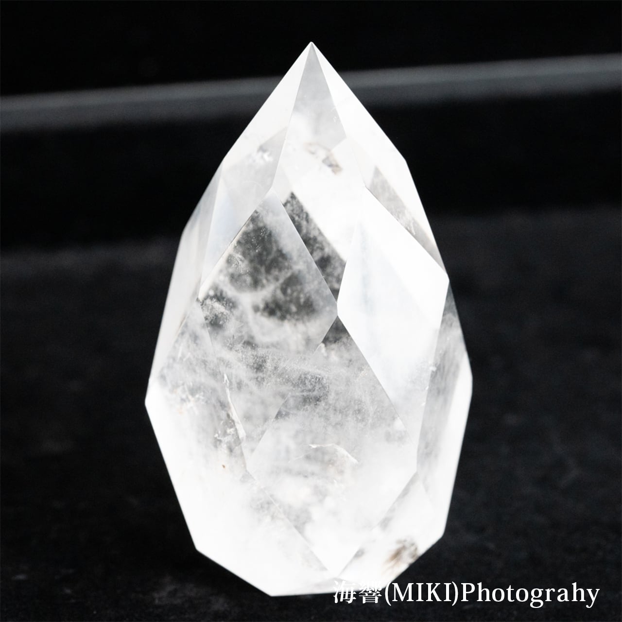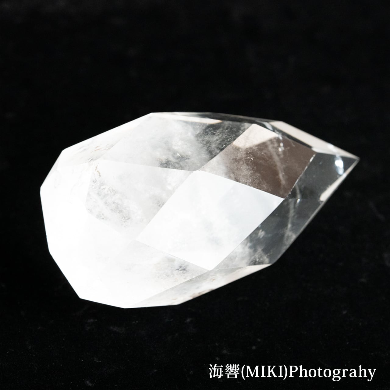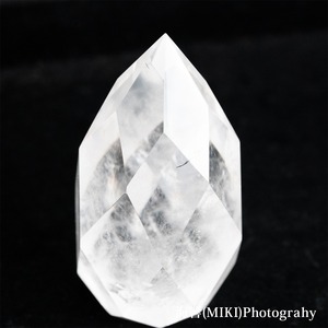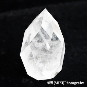 全体に施された多面カットのドロップ型クォーツ(水晶)です。
