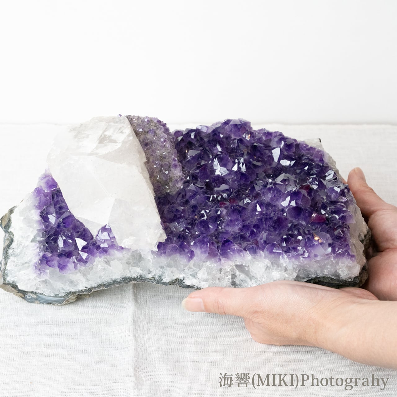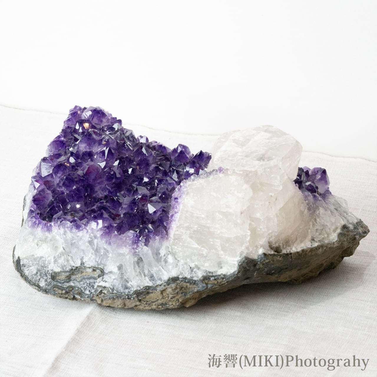 【アメジスト(紫水晶)クラスター カルサイト付き】1点限り