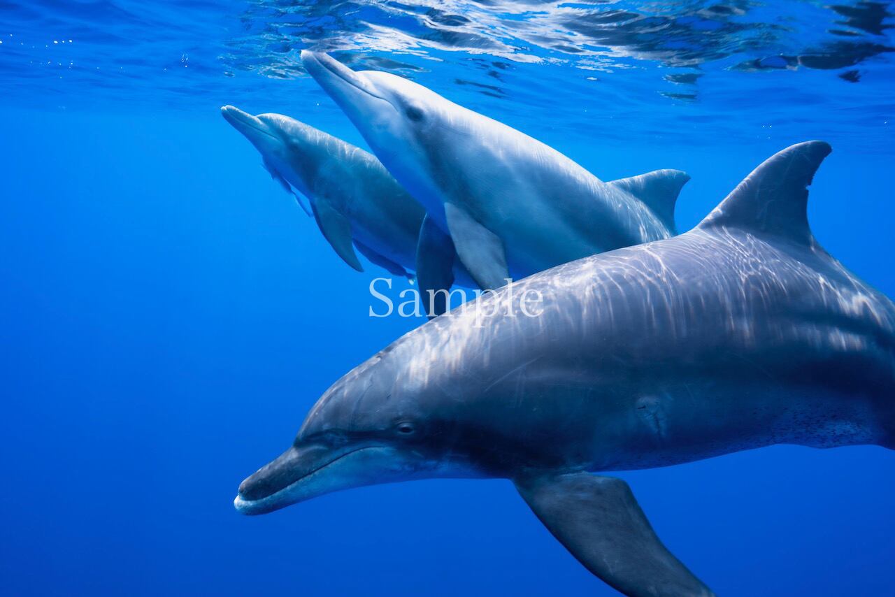 これはイルカの群れが去り、撮影が終わったと思って振り返ると、後方から私の方に向かって泳いでいて、1mほど前を通ったときの写真です。